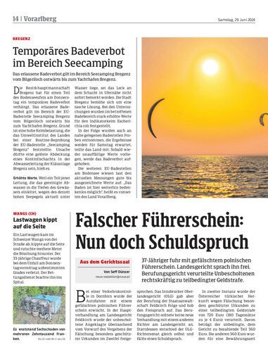 Das erlassene Badeverbot gilt im Bereich Seecamping Bregenz vom Bilgeriloch ostwärts bis zum Yachthafen Bregenz.