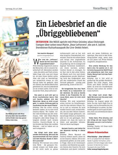 Interview. Die NEUE spricht mit Prinz Grizzley alias Christoph Comper über seine neue Platte „Dear Leftovers“, die am 4. Juli im Dornbirner Kulturhauspark ihr Live-Debüt feiert.