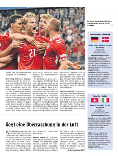 Italien plagen vor dem heutigen Achtelfinale in Berlin gegen die Schweiz (18 Uhr/ORF 1) Personalsorgen in der Defensive. Die Eidgenossen wollen die Überraschung.