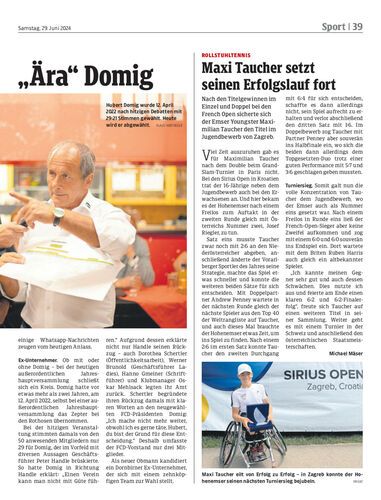 Nach den Titelgewinnen im Einzel und Doppel bei den French Open sicherte sich der Emser Youngster Maximilian Taucher den Titel im Jugendbewerb von Zagreb.