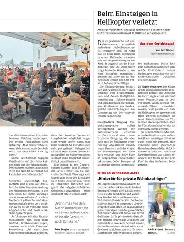 Am Kopf verletzter Passagier spricht von scharfer Kante im Türrahmen und fordert 15.300 Euro Schadenersatz.