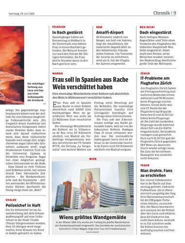 Frau soll in Spanien aus Rache Wein verschüttet haben