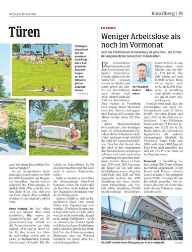 Zahl der Arbeitslosen in Vorarlberg ist gesunken. Ein Drittel der Angemeldeten tatsächlich in Kurzarbeit.