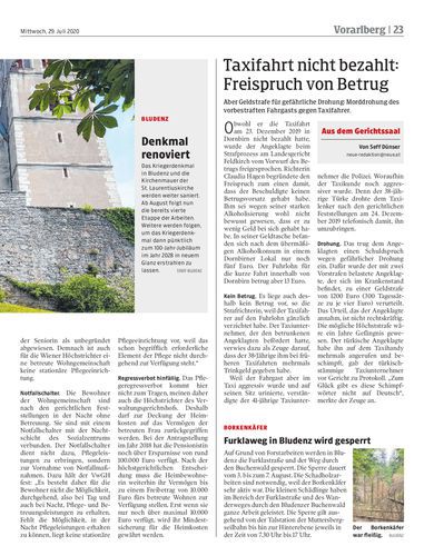 Aber Geldstrafe für gefährliche Drohung: Morddrohung des vorbestraften Fahrgasts gegen Taxifahrer.