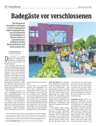 Das Bregenzer Strandbad verhängte in den vergangenen Tagen Zugangsstops, um die Sicherheit der Badegäste in Corona-Zeiten zu gewährleisten. Probleme stellen Beckenbereiche und Gastronomie dar.