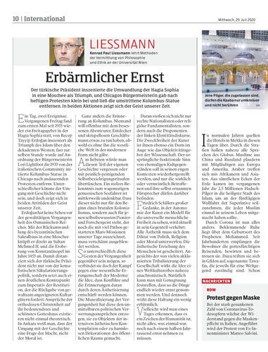 Der türkische Präsident inszenierte die Umwandlung der Hagia Sophia in eine Moschee als Triumph, und Chicagos Bürgermeisterin gab nach heftigen Protesten klein bei und ließ die umstrittene Kolumbus-Statue entfernen. In beiden Aktionen zeigt sich der Geist unserer Zeit.