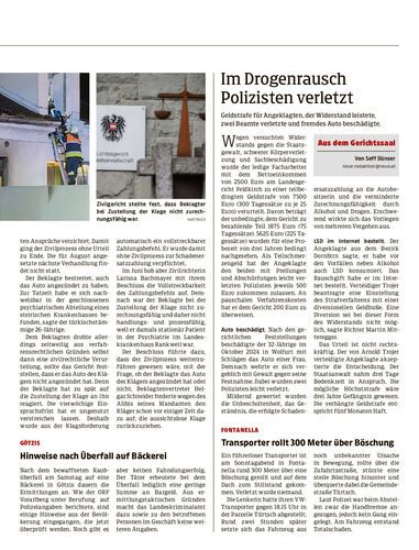 Geldstrafe für Angeklagten, der Widerstand leistete, zwei Beamte verletzte und fremdes Auto beschädigte.