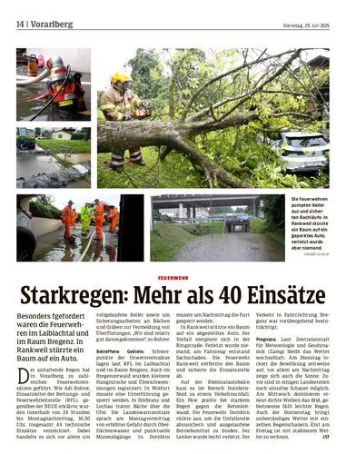 Besonders fgefordert waren die Feuerwehren im Laiblachtal und im Raum Bregenz. In Rankweil stürzte ein Baum auf ein Auto.