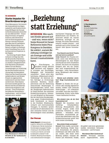 Interview. Wie wachsen Kinder gesund auf – und was, wenn nicht? Sonja Howard ist heuer Referentin beim Pina-Kongress in Dornbirn. Sie erklärt, warum Beziehung wichtiger ist als Strenge und stille Gewalt traumatisieren kann.