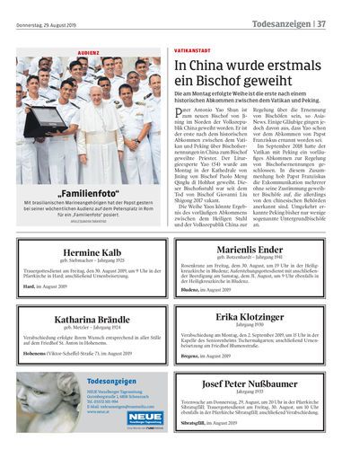 Die am Montag erfolgte Weihe ist die erste nach einem historischen Abkommen zwischen dem Vatikan und Peking.
