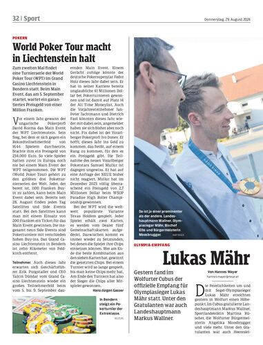 Zum zweiten Mal findet eine Turnierserie der World Poker Tour (WPT) im Grand Casino Liechtenstein in Bendern statt. Beim Main Event, das am 5. September startet, wartet ein garantiertes Preisgeld von einer Million Franken.