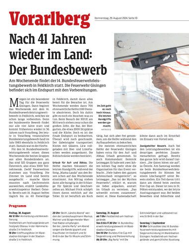 Am Wochenende findet der 14. Bundesfeuerwehrleistungsbewerb in Feldkirch statt. Die Feuerwehr Gisingen befindet sich im Endspurt mit den Vorbereitungen.