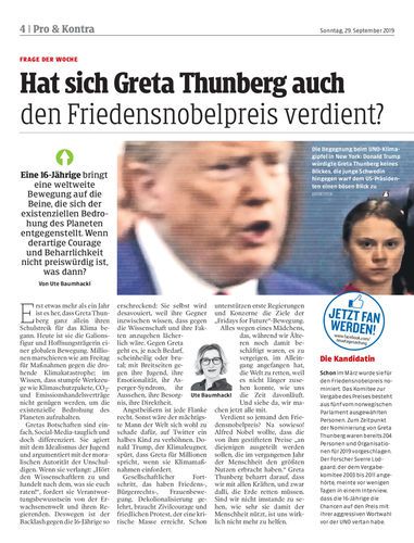 Hat sich Greta Thunberg auch den Friedensnobelpreis verdient?