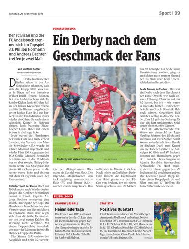 FC Andelsbuch trennen sich im Topspiel 3:3. Philipp Hörmann und Andreas Bechter treffen je zwei Mal.
