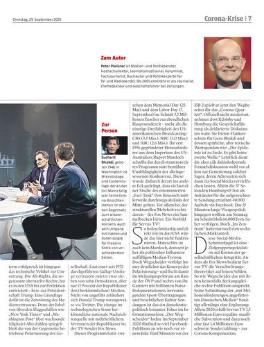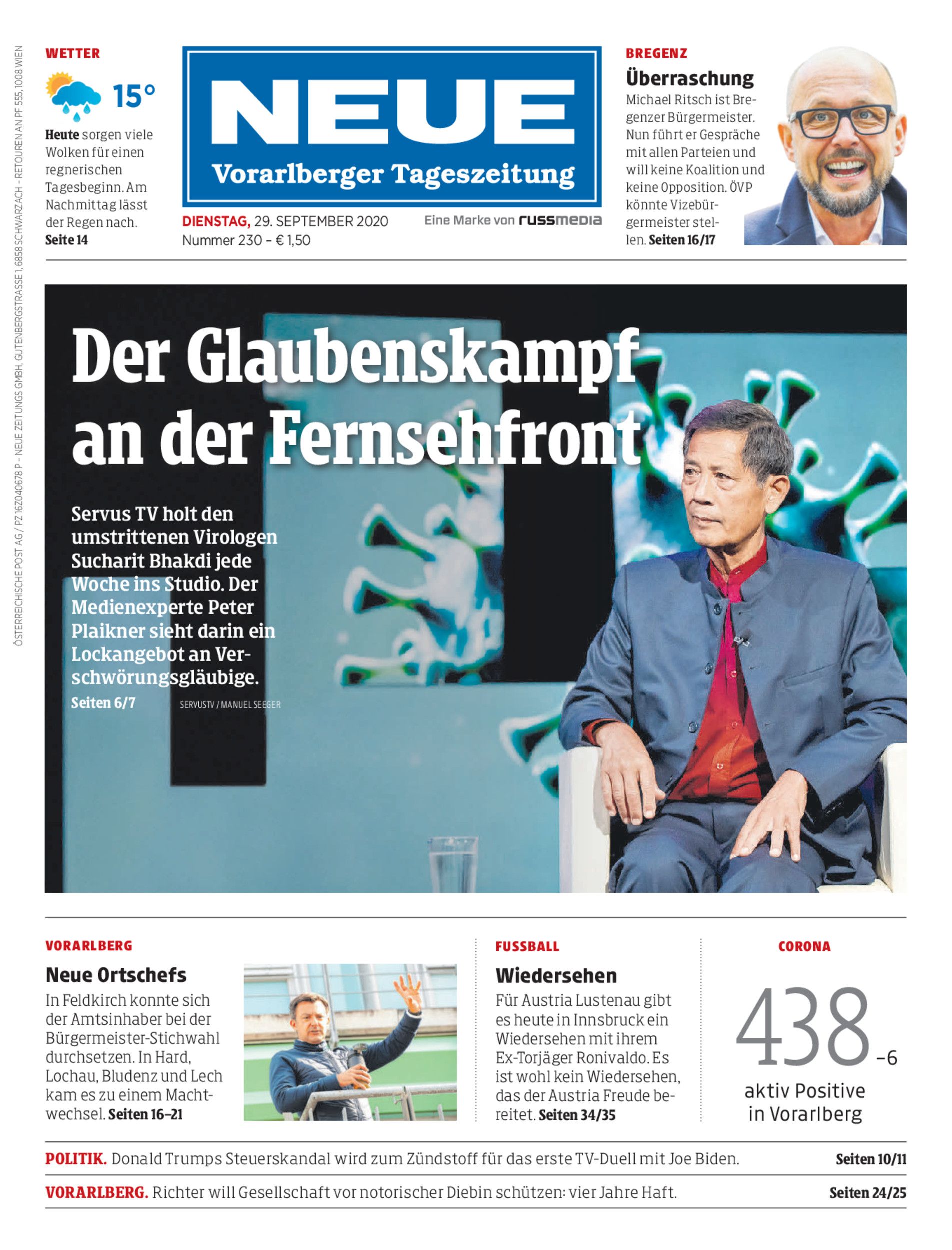 Servus TV holt den umstrittenen Virologen Sucharit Bhakdi jede Woche ins Studio. Der Medienexperte Peter Plaikner sieht darin ein Lockangebot an Verschwörungsgläubige. Seiten 6/7 ServusTV / Manuel Seeger