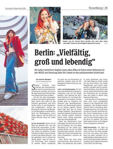 Ab sofort berichtet Sophia Juen alias Nika in Form einer Kolumne in der NEUE am Sonntag über ihr Leben in der pulsierenden Großstadt.