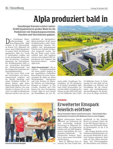 Vorarlberger Konzern wächst weiter: 23.000 Quadratmeter großes Werk für die Produktion von Verpackungssystemen, Flaschen und Verschlüssen geplant.