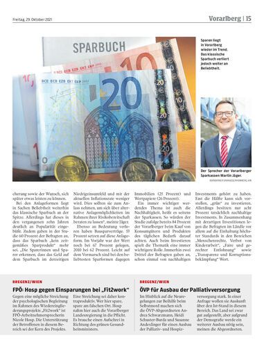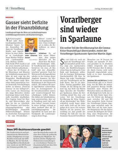Ein weiter Teil der Bevölkerung hat die Corona-Krise finanziell gut überstanden, meint der Vorarlberger Sparkassen-Sprecher Martin Jäger.