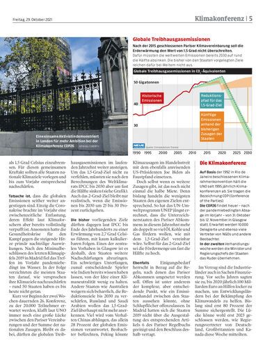 Ab Sonntag ringen bei der 26. Klimakonferenz in Glasgow fast 200 Staaten um Ziele, Regeln und Geld. Was bisher vorliegt, ist ungenügend.