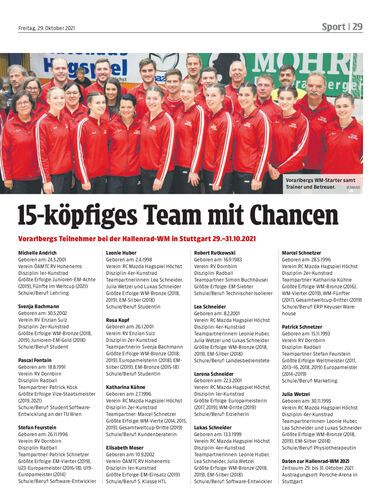 Von heute bis Sonntag findet in Stuttgart die Hallenrad-Weltmeisterschaft statt. 15 Vorarlberger haben sich qualifiziert.