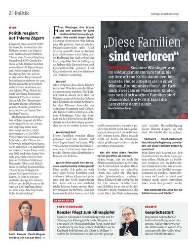 Susanne Wiesinger war im Bildungsministerium tätig, bis sie ihre offene Kritik daran den Job kostete. Heute arbeitet sie in einer Wiener „Brennpunktschule“. Ihr Fazit nach zwei Jahren Pandemie: Kinder aus sozial schwachen Familien sind chancenlos, die Politik lässt die Lehrkräfte damit allein. Von Christina Traar