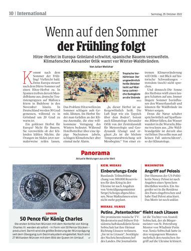 Hitze-Herbst in Europa: Grönland schwitzt, spanische Bauern verzweifeln. Klimaforscher Alexander Orlik warnt vor Winter-Waldbränden. Von Julian Melichar