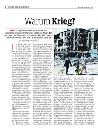 ESSAY. Kriege weisen Grundmuster auf: Sämtliche Kriegsführende, vor allem die Angreifer, beteuern, ihr Vorgehen sei gerecht. Wer über andere herfallen will, fand und findet immer Gründe. Von Manfried Rauchensteiner