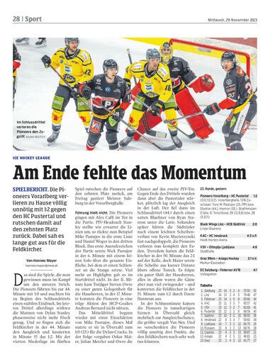 Spielbericht. Die Pioneers Vorarlberg verlieren zu Hause völlig unnötig mit 1:2 gegen den HC Pustertal und rutschen damit auf den zehnten Platz zurück. Dabei sah es lange gut aus für die Feldkircher.