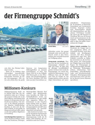 Der langjährige Geschäftsführer Thomas Fritz zieht sich im Frühjahr 2024 aus der Geschäftsführung ins Privatleben zurück – auf ihn folgt alleiniger CEO und Geschäftsführer Albert Trebo.