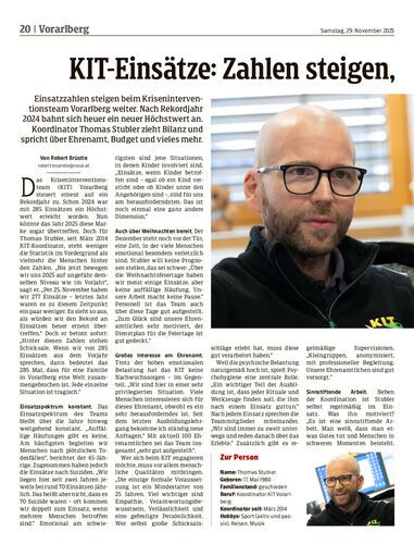 Einsatzzahlen steigen beim Kriseninterventionsteam Vorarlberg weiter. Nach Rekordjahr 2024 bahnt sich heuer ein neuer Höchstwert an. Koordinator Thomas Stubler zieht Bilanz und spricht über Ehrenamt, Budget und vieles mehr.