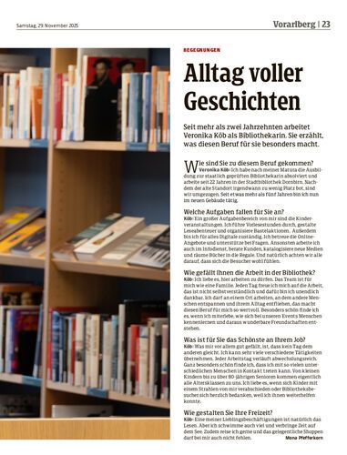 Seit mehr als zwei Jahrzehnten arbeitet Veronika Köb als Bibliothekarin. Sie erzählt, was diesen Beruf für sie besonders macht.