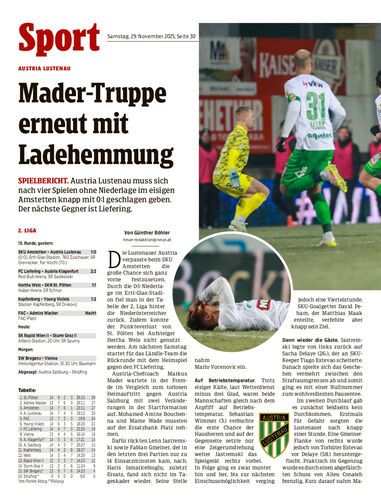 Spielbericht. Austria Lustenau muss sich nach vier Spielen ohne Niederlage im eisigen Amstetten knapp mit 0:1 geschlagen geben. Der nächste Gegner ist Liefering.
