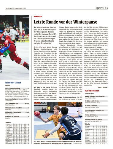 Nach dem heutigen Spieltag geht die HLA-Meisterliga in die Winterpause, danach steigt der Ligacup. Beim HC Hard möchte man den zweiten Tabellenplatz festigen, Bregenz ist auf der Suche nach der Trendwende.