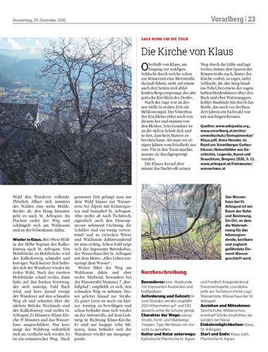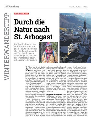 Die Geschichtenerzählerin Hertha Glück empfiehlt heute eine Runde über die Lourdeskapelle auf Tschütsch in den Sattelbergwald und über das Wasserhaus bei St. Arbogast wieder zurück.