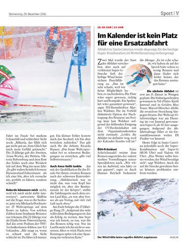 Abfahrt in Santa Caterina wurde abgesagt, für die heutige Super-Kombination ist Wetterbesserung vorhergesagt.