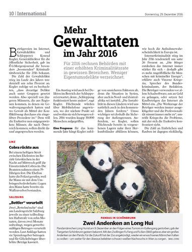 Für 2016 rechnen Behörden mit einer erhöhten Kriminalitätsrate in gewissen Bereichen. Weniger Eigentumsdelikte verzeichnet.