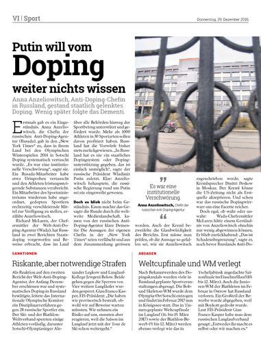 Anna Anzeliowitsch, Anti-Doping-Chefin in Russland, gestand staatlich gelenktes Doping. Wenig später folgte das Dementi.