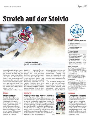 Dominik Paris und Bormio – das Verhältnis stimmt: Der Italiener siegte bereits zum dritten Mal in der Lombardei. Vincent Kriechmayr wurde als Fünfter bester ÖSV-Fahrer.