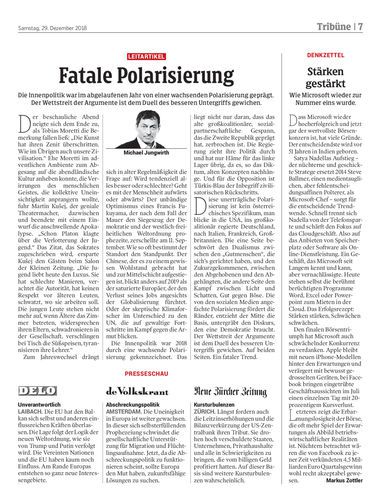 Die Innenpolitik war im abgelaufenen Jahr von einer wachsenden Polarisierung geprägt. Der Wettstreit der Argumente ist dem Duell des besseren Untergriffs gewichen.