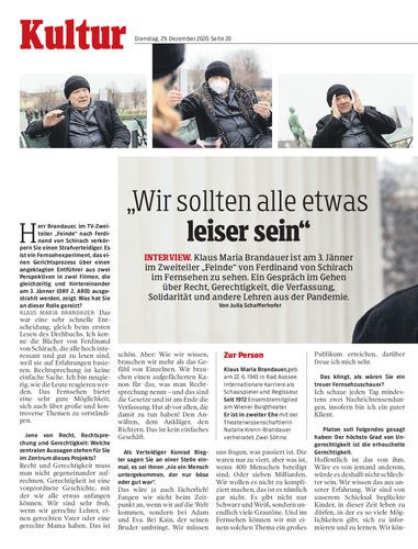 Klaus Maria Brandauer ist am 3. Jänner im Zweiteiler „Feinde“ von Ferdinand von Schirach im Fernsehen zu sehen. Ein Gespräch im Gehen über Recht, Gerechtigkeit, die Verfassung, Solidarität und andere Lehren aus der Pandemie. Von Julia Schafferhofer