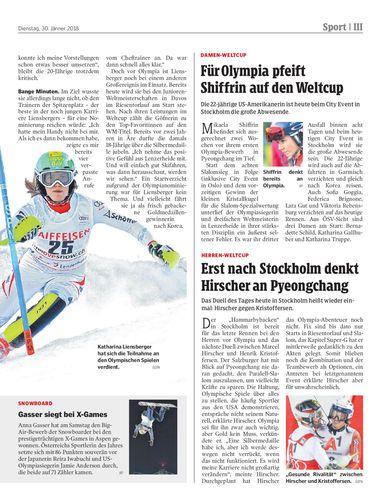 Die wichtigsten Nachrichten von Österreichs Sportlern 11 Tage vor Beginn der Olympischen Winterspiele in Pyeongchang.