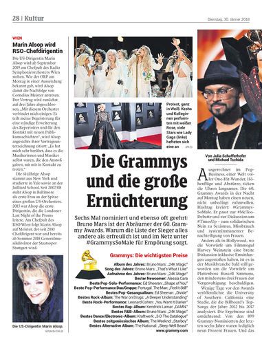 Sechs Mal nominiert und ebenso oft geehrt: Bruno Mars ist der Abräumer der 60. Grammy Awards. Warum die Liste der Sieger alles andere als erfreulich ist und im Netz unter #GrammysSoMale für Empörung sorgt.