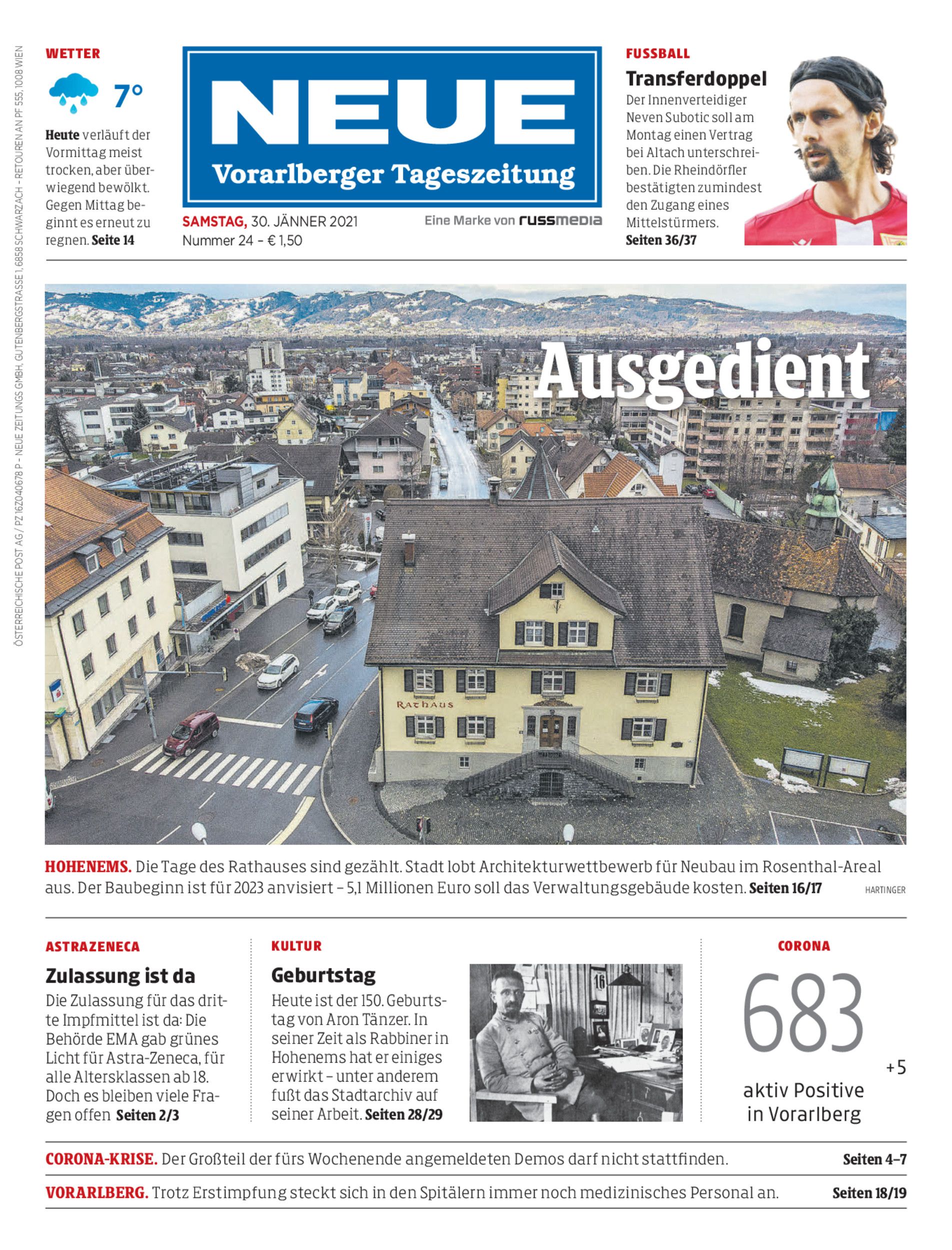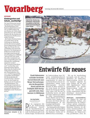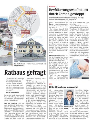 Hohenems. Die Tage des Rathauses sind gezählt. Stadt lobt Architekturwettbewerb für Neubau im Rosenthal-Areal aus. Der Baubeginn ist für 2023 anvisiert – 5,1 Millionen Euro soll das Verwaltungsgebäude kosten. Seiten 16/17 Hartinger