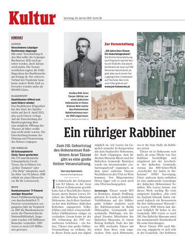 Zum 150. Geburtstag des Hohenemser Rabbiners Aron Tänzer gibt es eine große Online-Veranstaltung.
