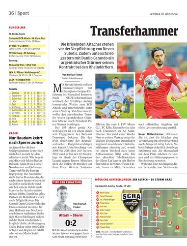 Die kriselnden Altacher stehen vor der Verpflichtung von Neven Subotic. Zudem unterschrieb gestern mit Danilo Carando ein argentinischer Stürmer seinen Kontrakt bei den Rheindörflern.