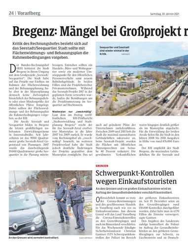 Kritik des Rechnungshofes bezieht sich auf das Seestadt/Seequartier. Stadt sollte mit Flächenwidmungs- und Bebauungsplan die Rahmenbedingungen vorgeben.