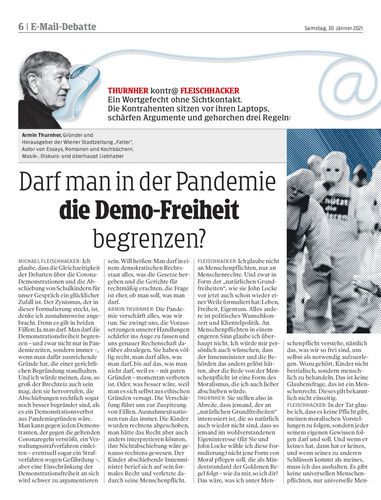 THURNHER kontr@ FLEISCHHACKER Ein Wortgefecht ohne Sichtkontakt. Die Kontrahenten sitzen vor ihren Laptops, schärfen Argumente und gehorchen drei Regeln: