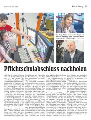 Das BFI und der Digital Campus Vorarlberg starten neue Bildungsangebote. Land und die AK erhöhen die Bildungsförderung.