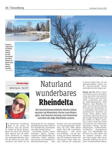 Die Geschichtenerzählerin Hertha Glück spaziert ab Rheinholz-Gatter zum Rheinspitz. Am Seeufer entlang zum Entenbad und über die Alpe Rheinholz zurück.