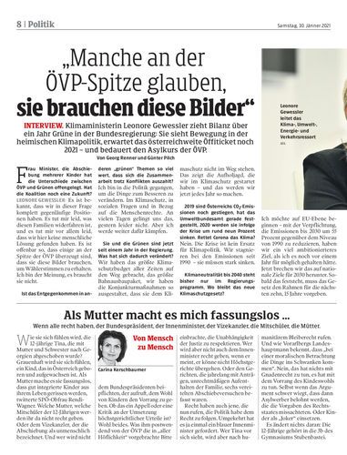 Klimaministerin Leonore Gewessler zieht Bilanz über ein Jahr Grüne in der Bundesregierung: Sie sieht Bewegung in der heimischen Klimapolitik, erwartet das österreichweite Öffiticket noch 2021 – und bedauert den Asylkurs der ÖVP. Von Georg Renner und Günter Pilch